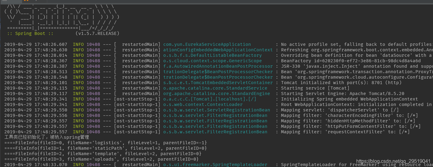 运行结果:开始运行的时候报错。后来查看是我的实体类 FileInfo 没有空参构造,加上空参构造,就能运行了。
