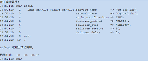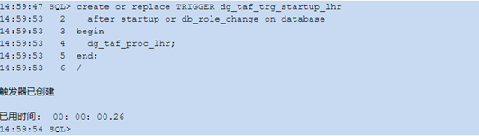 4) 在主库手工启动TAF的Service(或重启数据库,重启数据会触发 触发器->存储过程->TAF的Service)