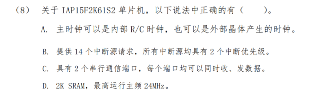 查询该单片机主要性能发现,最高运行主频是35MHz,所以D选项也是错误的。