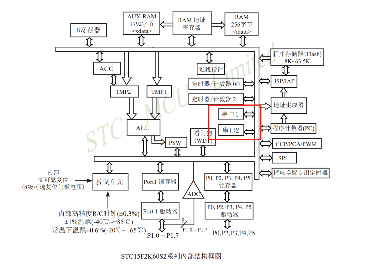 查询用户手册该单片机系列内部结构框图发现C是正确的的