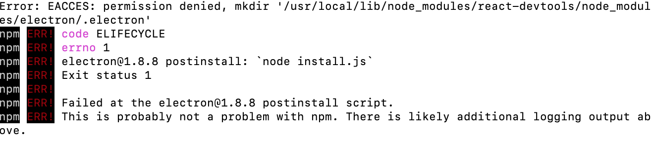 安装react-devtools报错permission denied, access '/usr/local/lib/node_modules