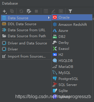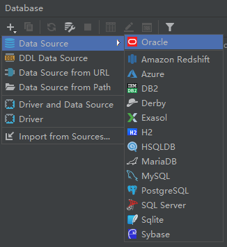 + -> Data source -> Oracle(其他数据库同理)