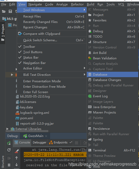 view -> Tool Windows -> Database