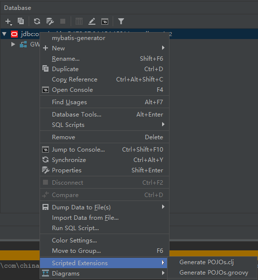</dependency>在database视图区域任意地方右键,然后Scripted Extensions -> Go to Scripts Directory