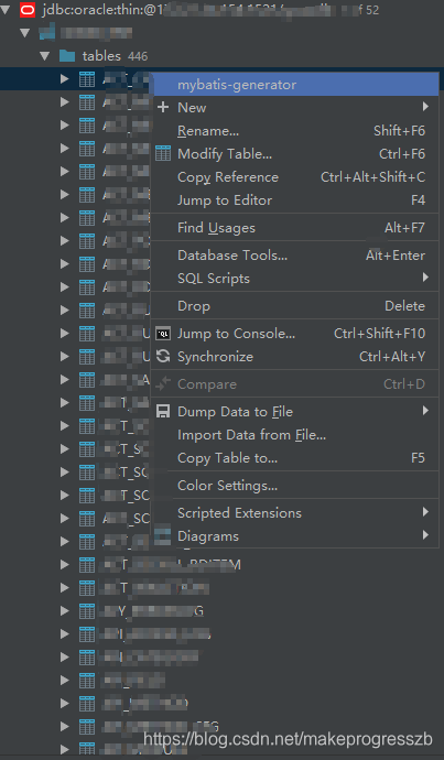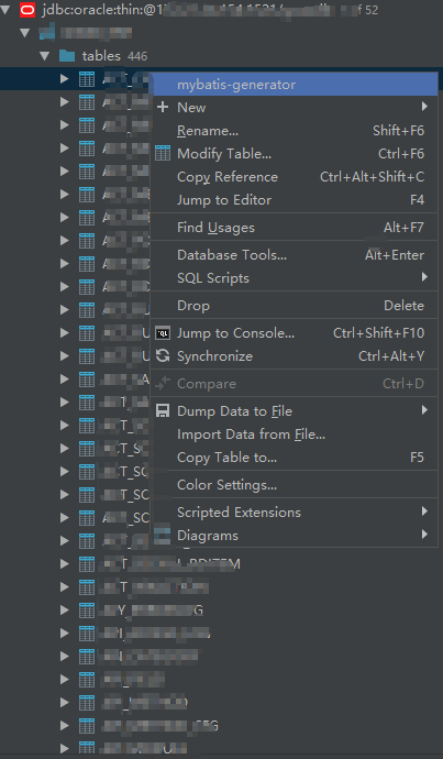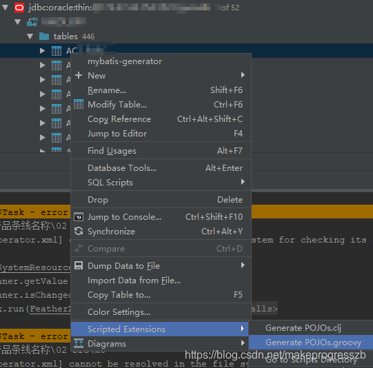 }在database视图区域选择你想要生成的表,然后Scripted Extensions -> Generate POJOs.groovy 可以使用Shift和Ctrl多选