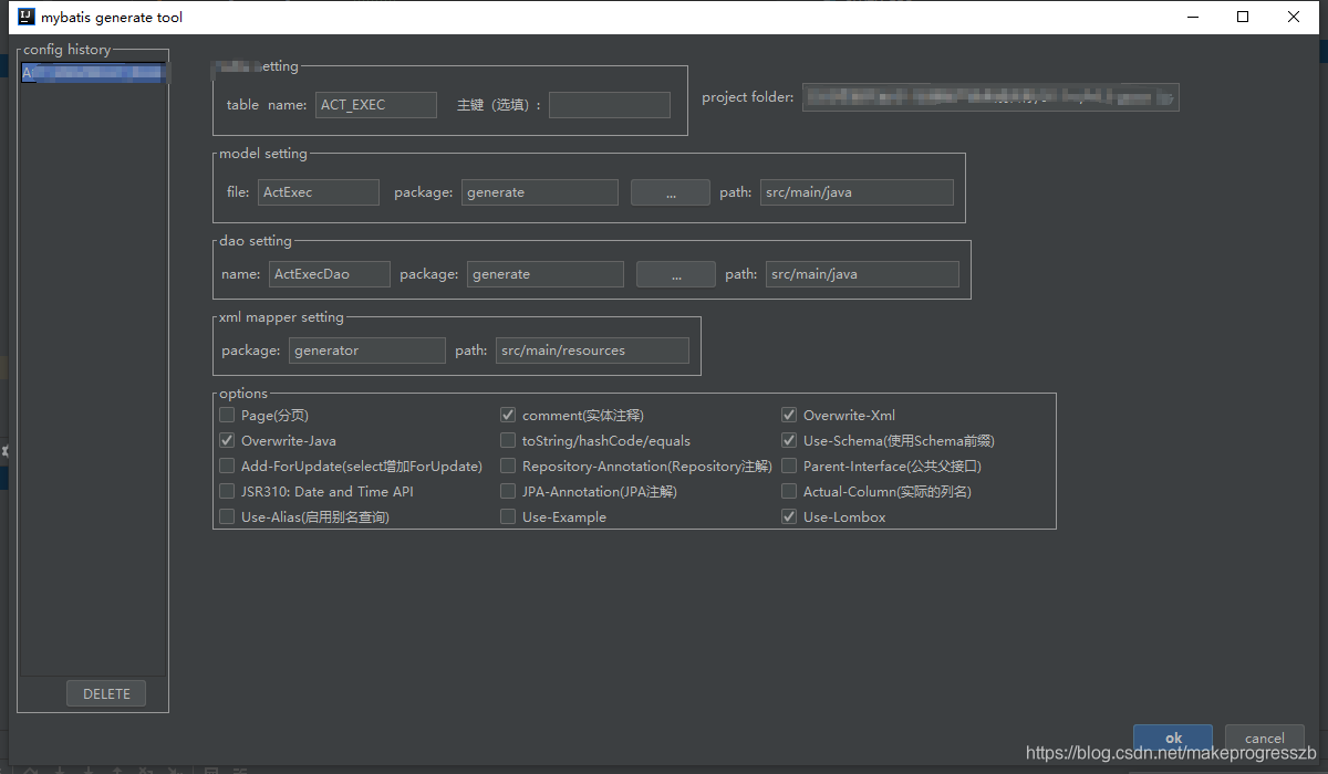 配置生成实体类的参数