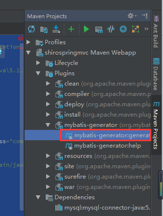 4、使用maven运行mybatis-generator-maven-plugin插件:工程名->Plugins->mybatis-generator->mybatis-generator:generate->Run Maven Build