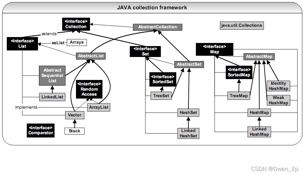 D.WeakMap不存在于java集合框架的。只有一个叫做WeakHashMap(继承自AbstractMap)。