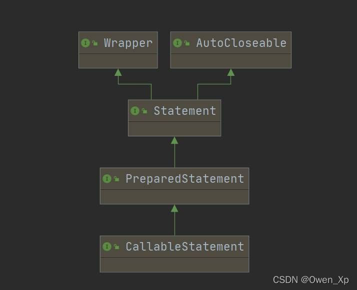 Statement 是 PreparedStatement 的父接口,PreparedStatement 是 CallableStatement 的父接口。