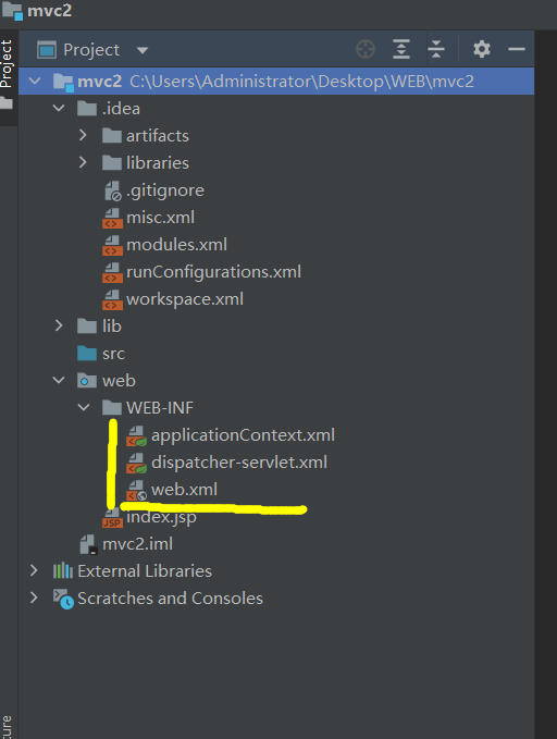 注意观察:applicationContext.xml,dispatcher-servlet.xml都在WEB-INF内被创建了