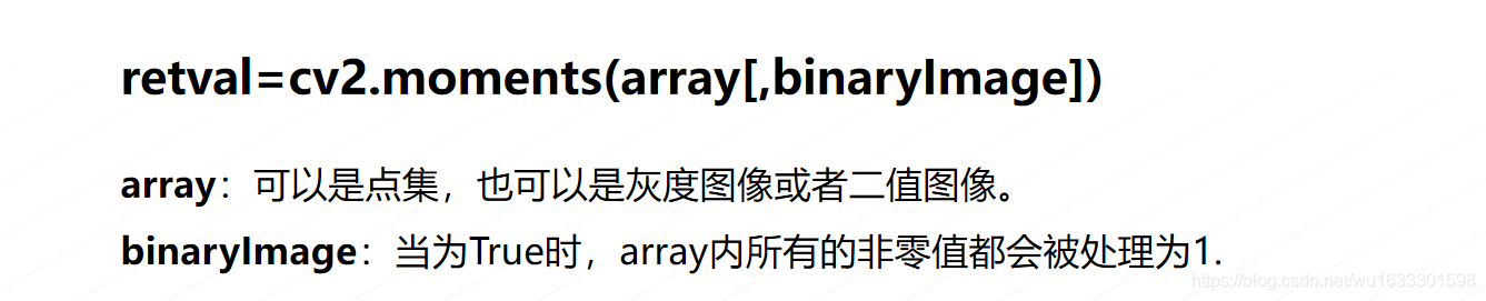 Hu矩是归一化中心矩的线性组合,Hu矩再图像旋转,缩放,平移等操作后,仍能保持矩的不变性,经常使用 Hu 矩来识别图像的特征。在 OpenCV 中,使用函数 cv2.HuMoments()可以得到 Hu 距。该函数使用 cv2.moments()函数的返回值作为参数,返回 7 个 Hu 矩值。