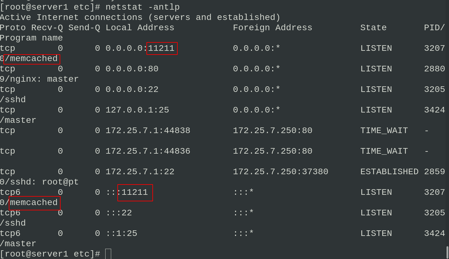 memcachedNodes="n1:172.25.7.2:11211,n2:172.25.7.3:11211"
