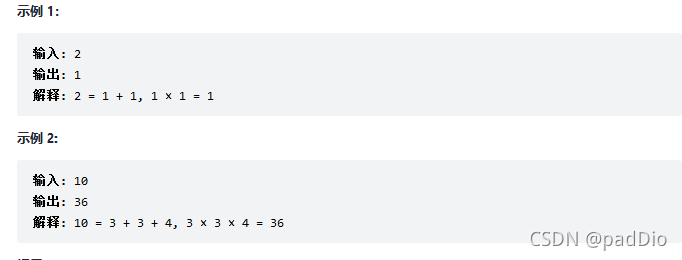 这里用到了一个数学思路:当n个数相加的和固定时(设目标和为target),要让这n个数的乘积最小,则必须让这n个数尽量接近。如:将9分成3个数的和,当3个数同时为3时,它们的积为27最大,因为此时三个数相等,相互之间最为接近。