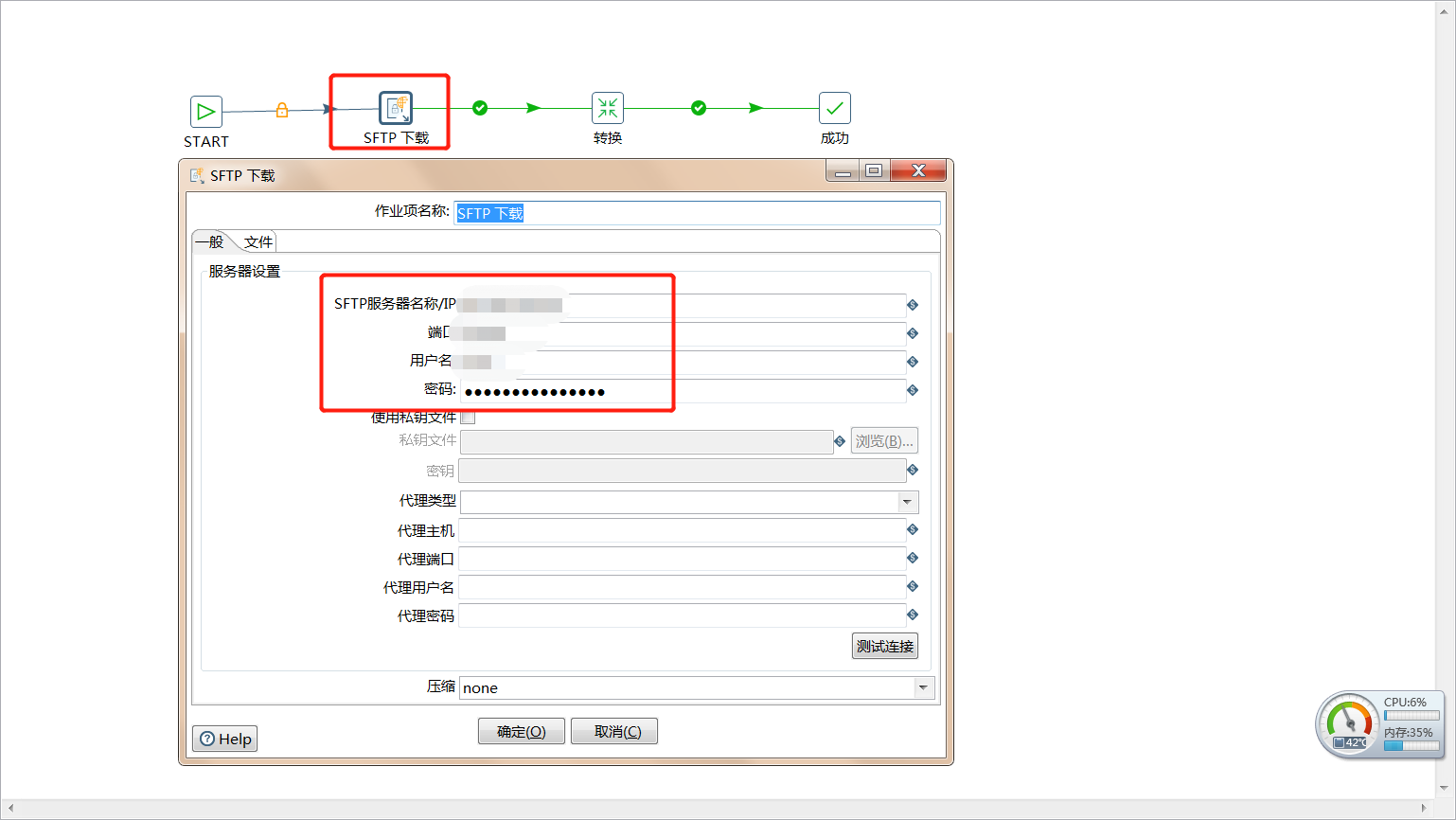 在kettle作业中使用:“SFTP下载”组件,将远程服务器中指定文件夹中的文件下载到本地。