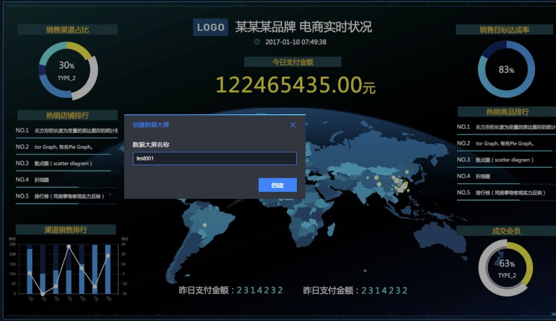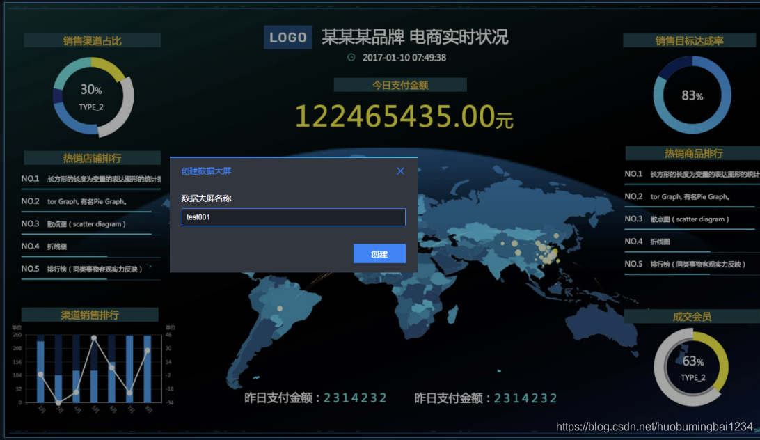 帆软的这个能调整的东西还是很多的,坐标轴和字体大小啥的,然后就是设置背景,再根据背景调整各个图的配色,大屏用蓝色背景的比较多,配图要跟着调整一下,看起来更专业点,然后不断预览结果修改细节的地方。最后设置下报表自动刷新的东西。