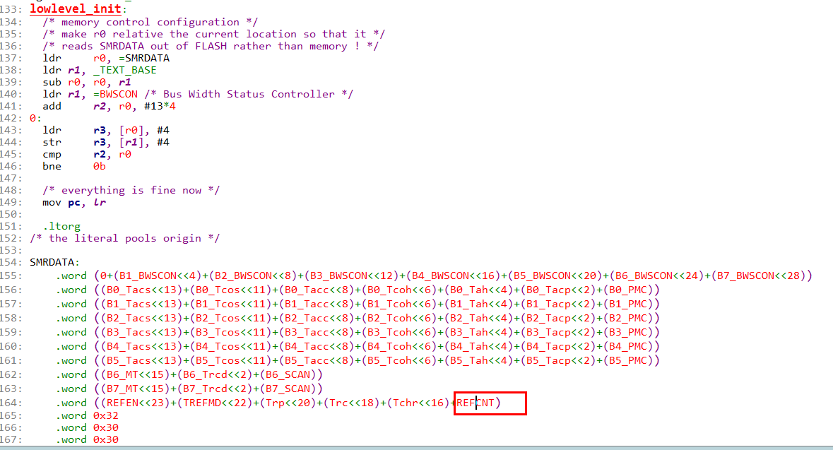 内存值替换成我们的:lowlevel_init(board/samsung/smdk2440/)