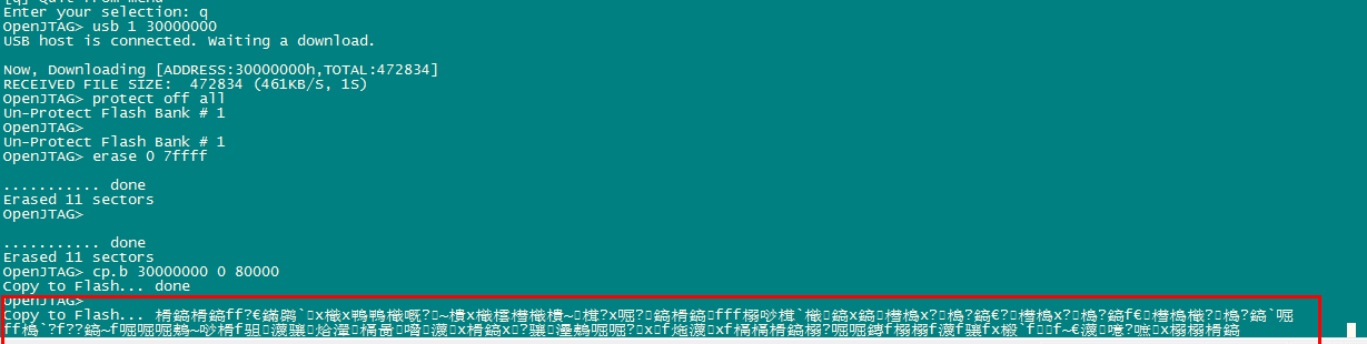 重新编译少些程序,通过usb烧写(将正常使用boot烧录到norflash后使用dnw烧写),烧写命令如下: