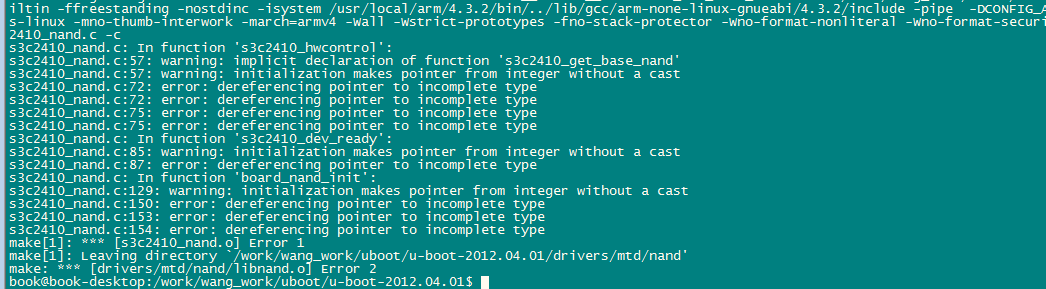 错误出自于nandflash,到s3c2410_nand.c的72行分析得知,结构体s3c2410_nand只有在宏CONFIG_S3C2410定义时有效,CONFIG_S3C2410和CONFIG_S3C2440不能同时定义。