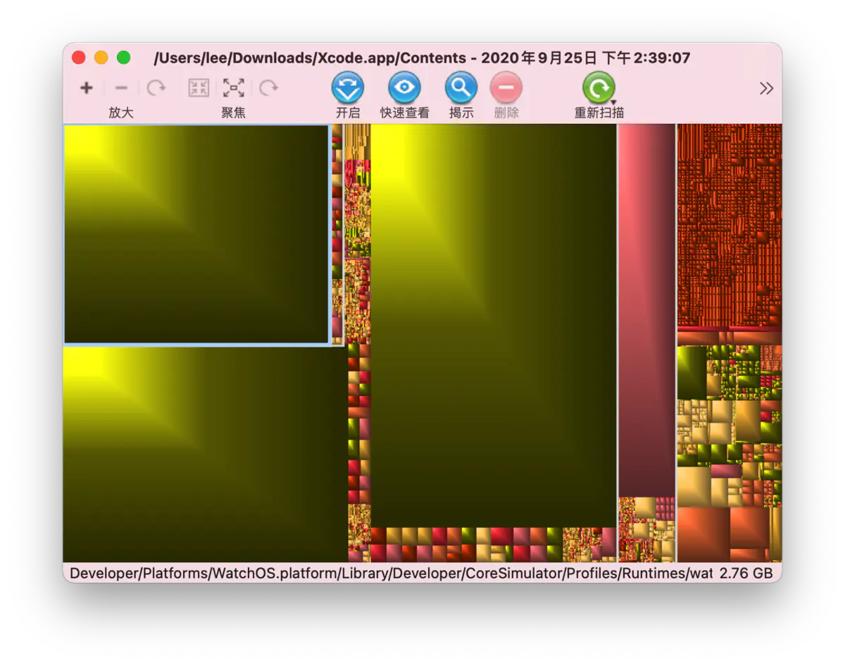 打开 GrandPerspective 跑了一下。得出如下结果: