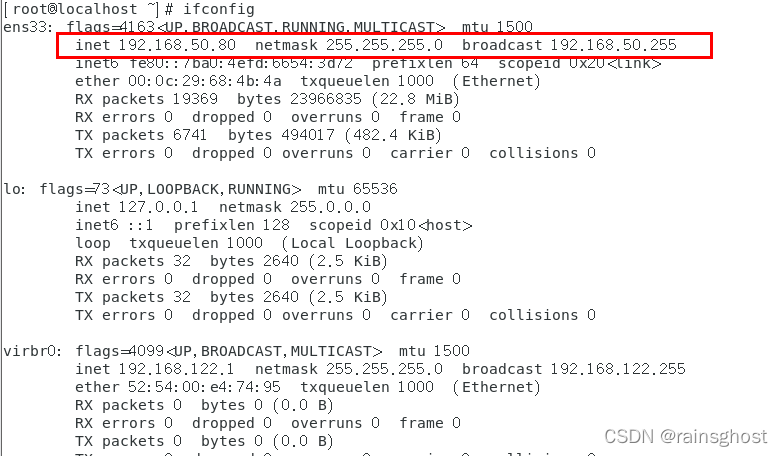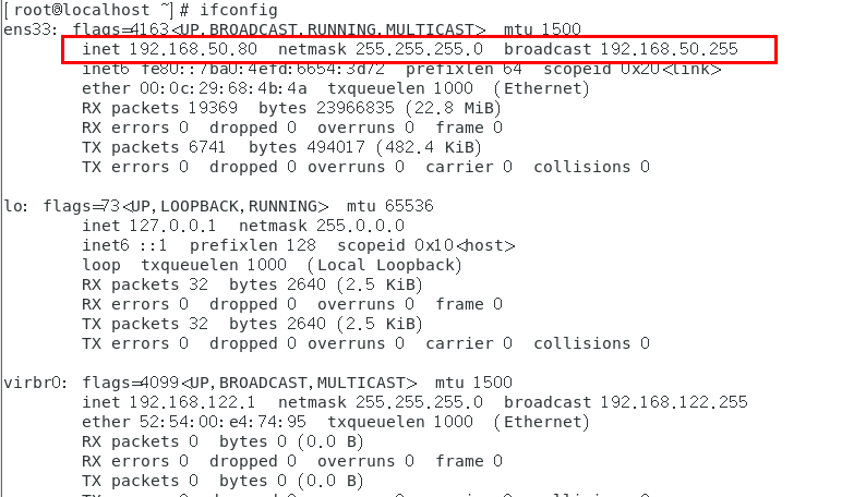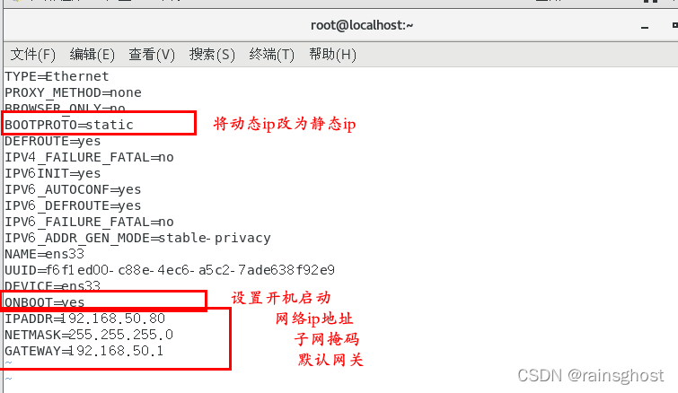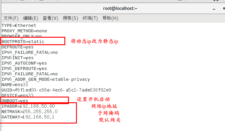 [root@localhost ~]# vim /etc/sysconfig/network-scripts/ifcfg-ens33