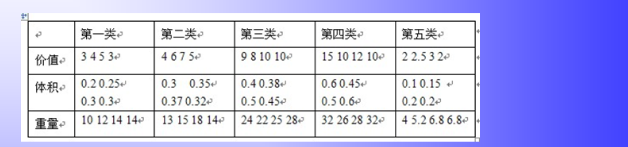有五类问题,每类选择一个放入背包,得到整体的解,因为解有很多,所以没有在图片中将