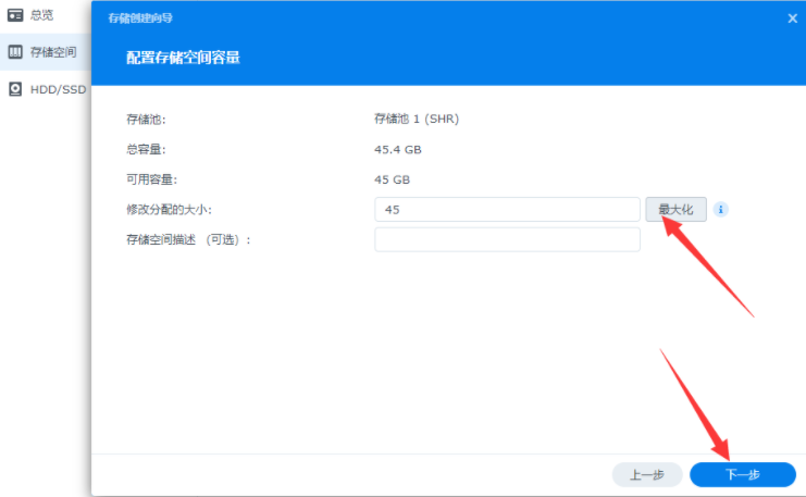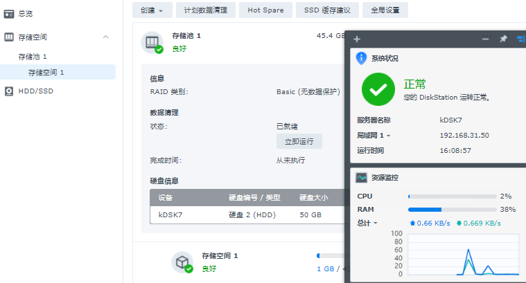 管理员即系统基本信息设置完毕后,我们就能正式进入群晖存储器的硬盘空间设置。