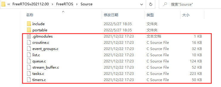 我们工程移植用到的是 FreeRTOS 文件夹中内容。
