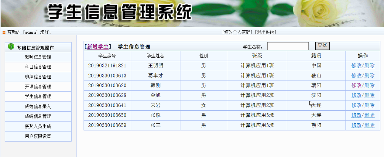 学生资料的增加、修改、删除、查询