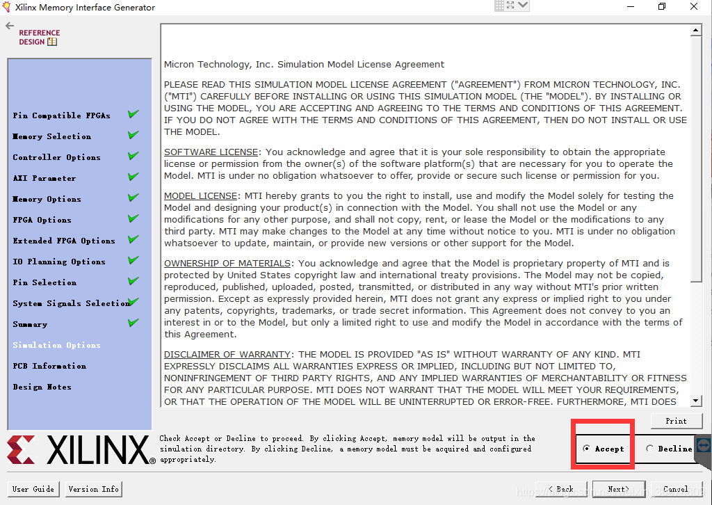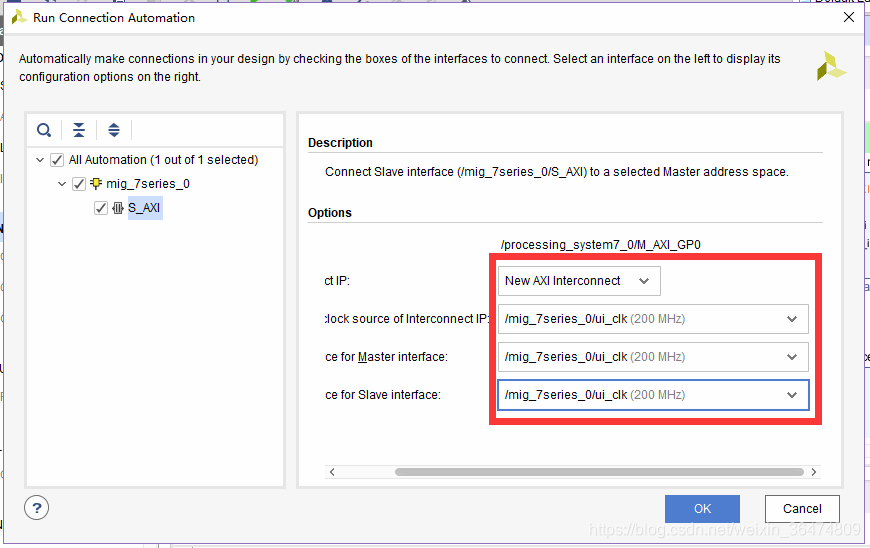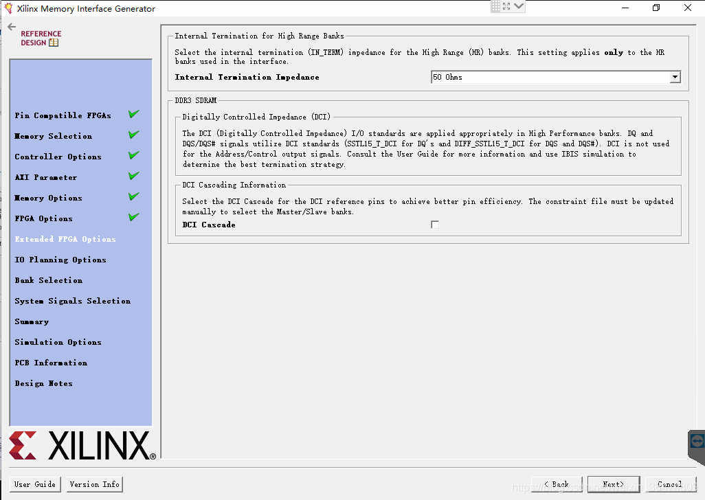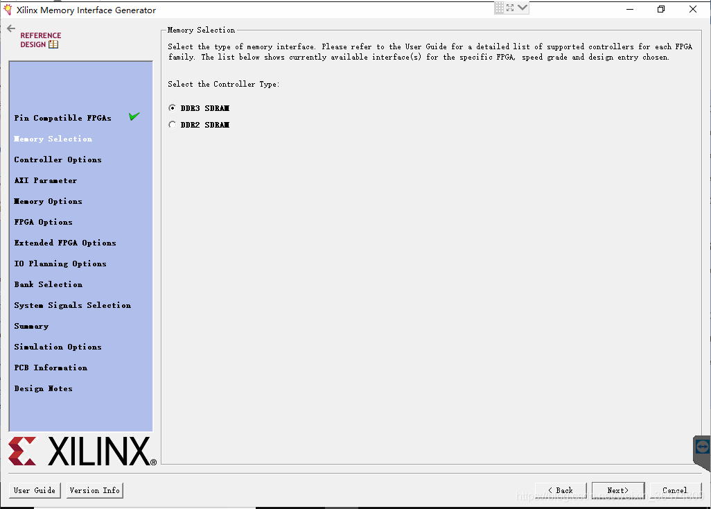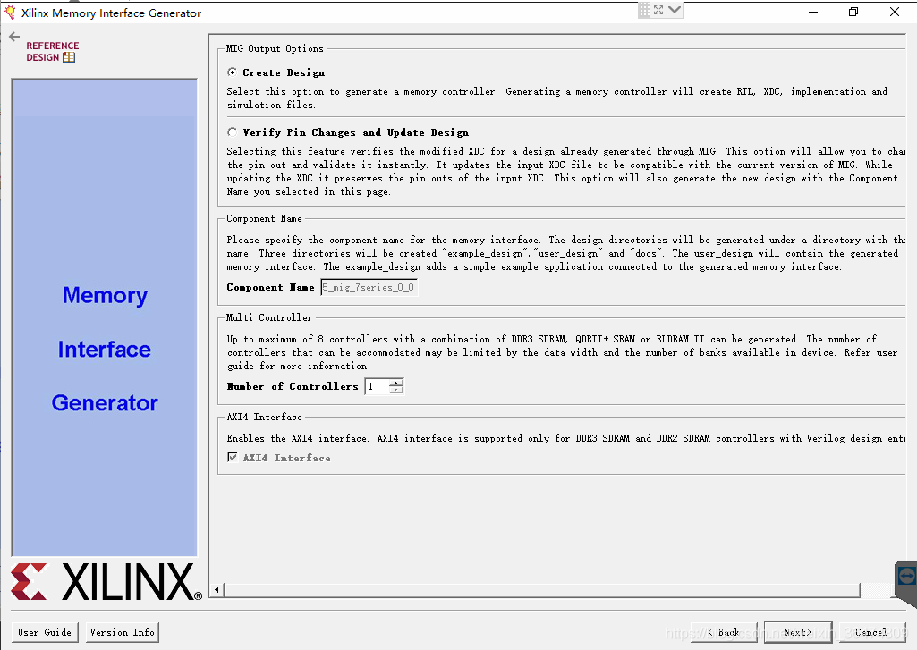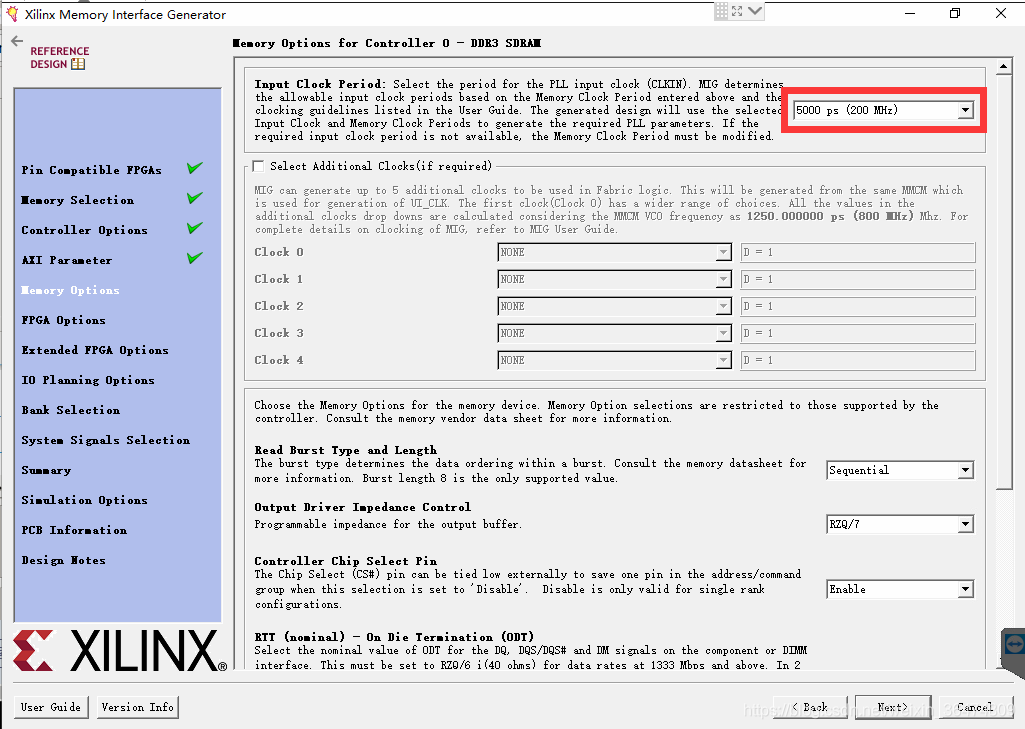 弹出窗口Xilinx Memory Interface Generator
