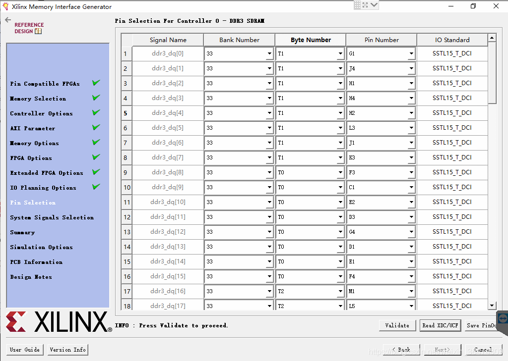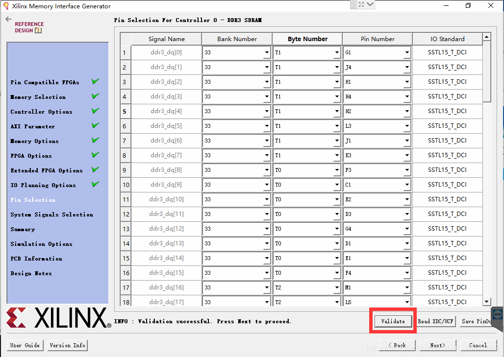 选择开发板默认的DDR管脚分布文件