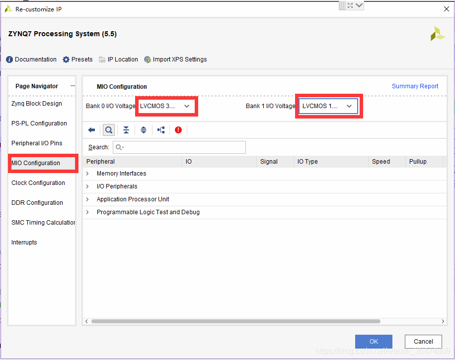BANK0为3.3V,BANK1为1.8V