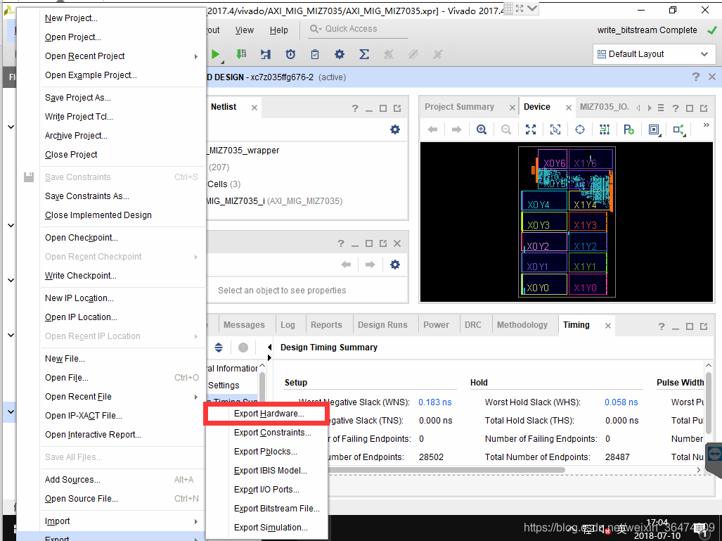 点击Generate Bitstream完成综合,生成bit文件