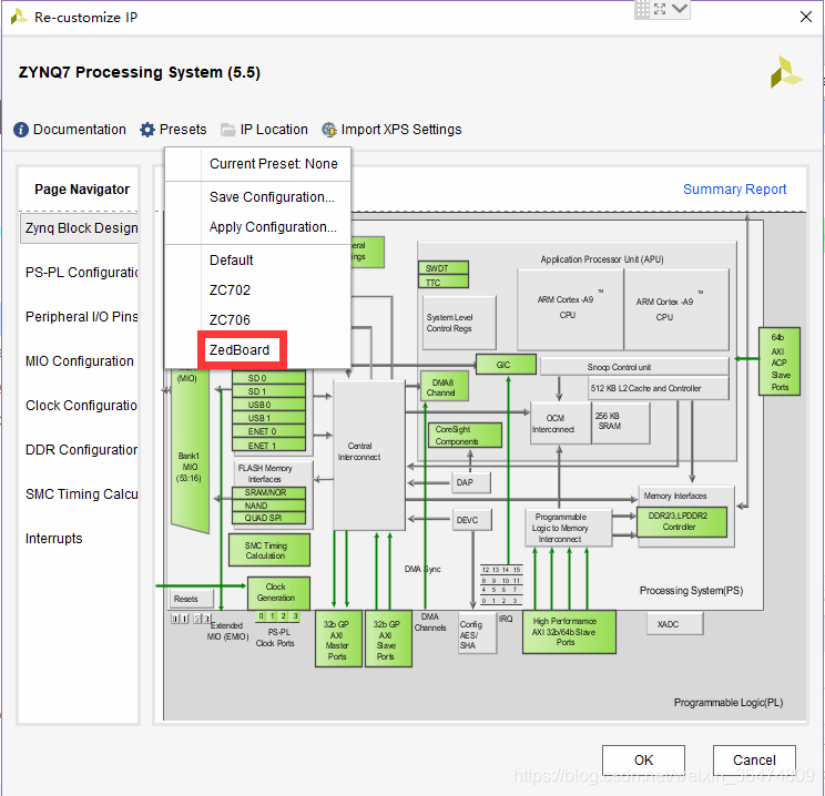 先应用一个开发板的配置(Zedboard),这样配置起来比较快