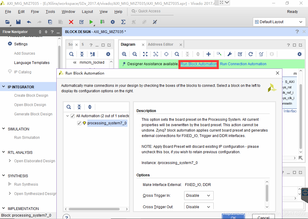 点击Run Block Automation,建立PS的接口