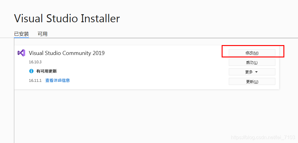 注意:路径中不要包含中文,并且电脑安装VS2019并包含C++模块。如果没有的话,找到VS2019的安装文件,选择修改,将c++开发模块安装。