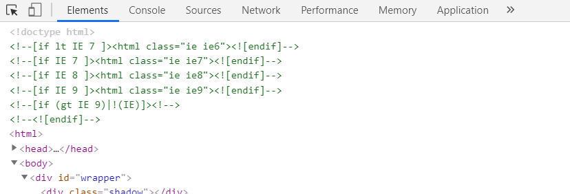 下图是在Google Chrome浏览器中F12键显示的Elements。