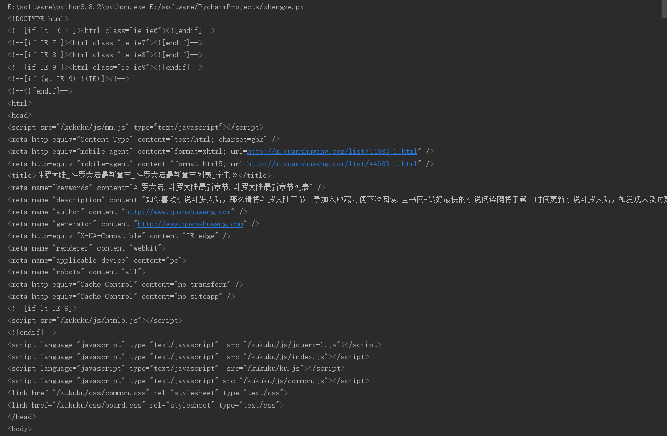 上图是通过代码得到的目标页面对应HTML文件在PyCharm中的实现结果,