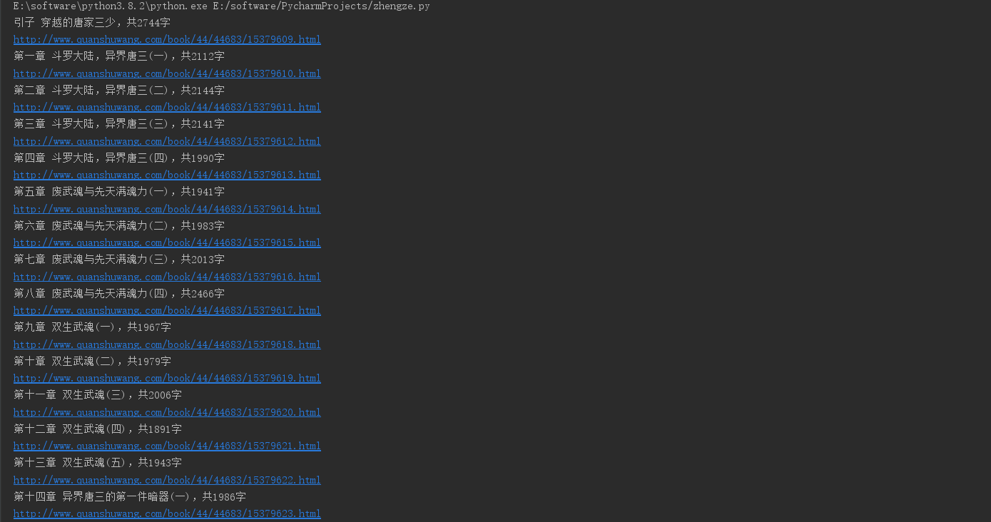 print(chapter_contant)就按照此思路一步一步分析,由于目标程序太多,运行要得到最终结果需要等较长时间,故这里只给出最终代码,最后结果即文章全部内容输出到显示频上,读者感兴趣可亲自尝试。