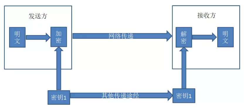 对称加密算法采用单密钥加密,在数据传输过程中,发送方将原始数据分割成固定大小的块,经过密钥和加密算法逐个加密后,发送给接收方;接收方收到加密后的报文后,结合密钥和解密算法解密组合后得出原始数据。由于加解密算法是公开的,因此在这过程中,密钥的安全传递就成为了至关重要的事了。而密钥通常来说是通过双方协商,以物理的方式传递给对方,或者利用第三方平台传递给对方,一旦这过程出现了密钥泄露,不怀好意的人就能结合相应的算法拦截解密出其加密传输的内容。