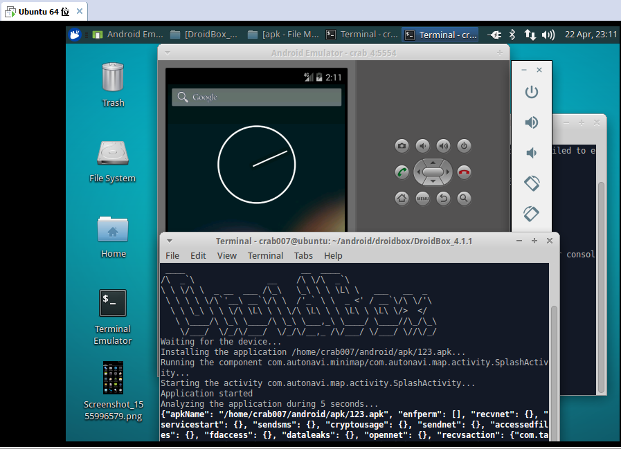 Linux:Ubuntu 15.10主要步骤是按照该篇来进行的 Droidbox恶意软件动态分析环境搭建