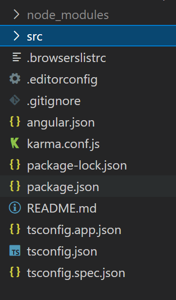 angular.json Angular命令行工具的配置文件。后期可能会去修改它,引一些其他的第三方的包 比如jquery等