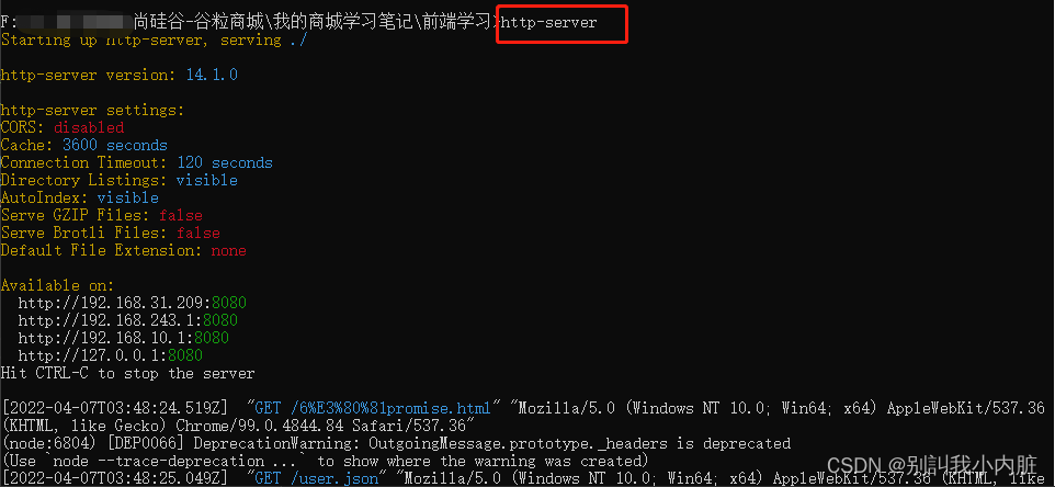 http-server我是 此路径下 执行 http-server 命令