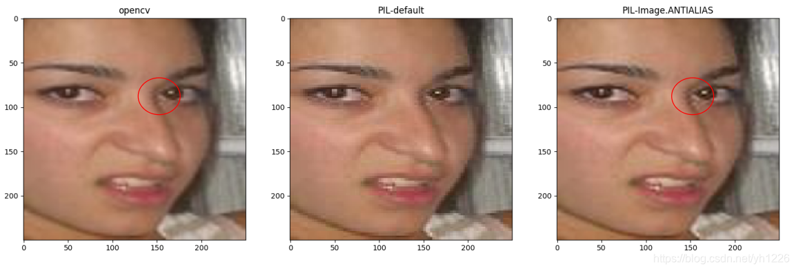 如上图,很明显可以看出PIL默认的resize效果很差(中间),很多细节已经失真。加入Image.ANTIALIAS后,效果要比默认的好,但是在某些细节还是没有opencv默认的resize效果好。