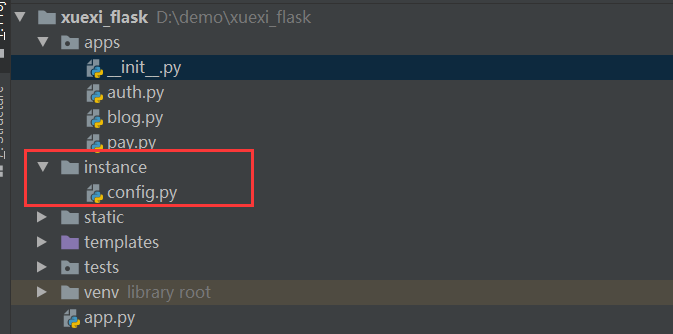instance文件夹是根目录的一个子文件夹,包括了一个特定于当前应用实例的配置文件。我们不要把它提交到版本控制中。