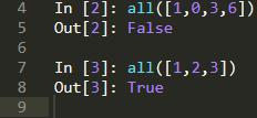 接受一个迭代器,如果迭代器的所有元素都为真,那么返回True,否则返回False