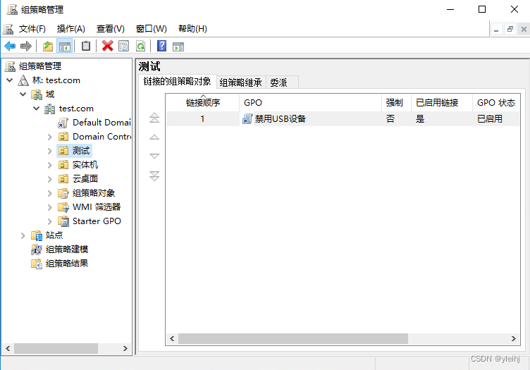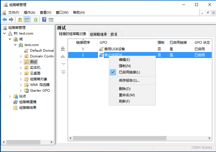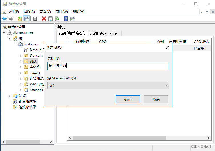 6: 在测试OU中右键选择在这个域中创建GPO并在此处链接。