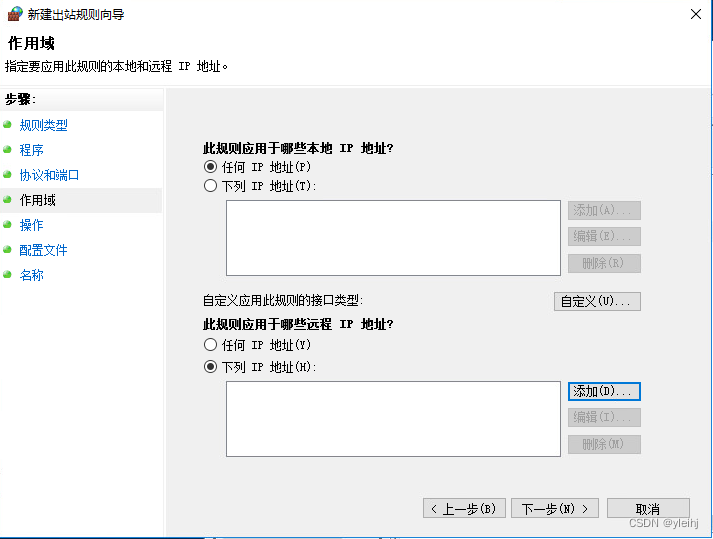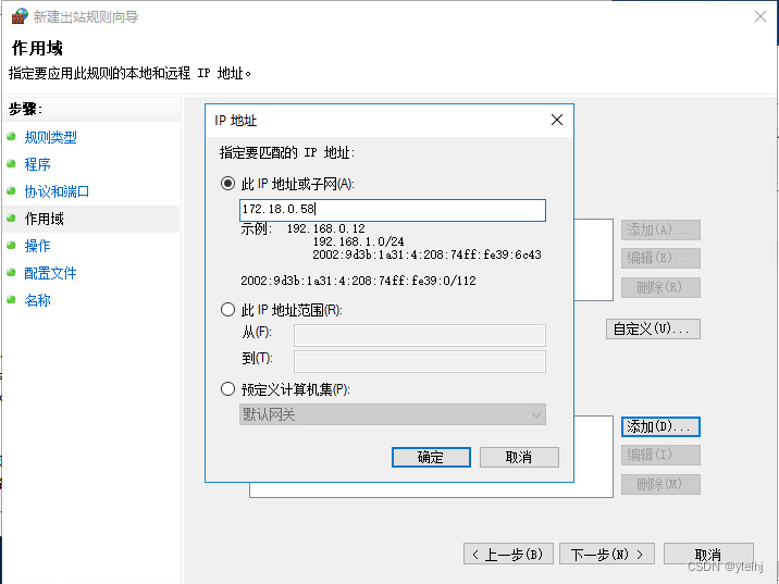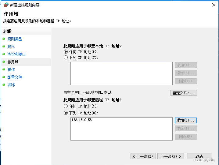 13:在此规则应用于哪些远程IP地址处点击添加。