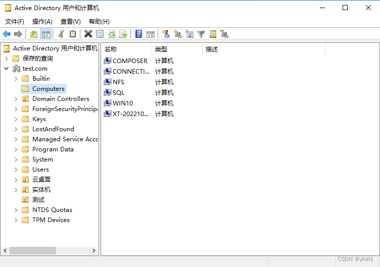 1:在域服务器上运行Active Directory用户和计算机,在Computers中可以看到加入域的计算机。