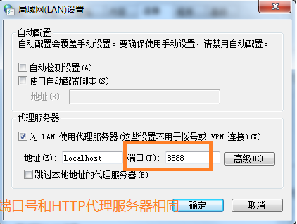 4、浏览器设置代理服务器: Chrome浏览器打开局域网设置,勾选代理服务器,端口号和HTTP代理服务器相同 备注:录制完需要去掉代理服务器