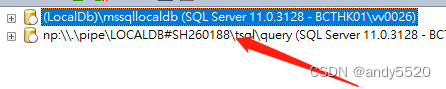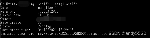 b.使用 sqllocaldb i mssqllocaldb 查看连接远程的隧道名称